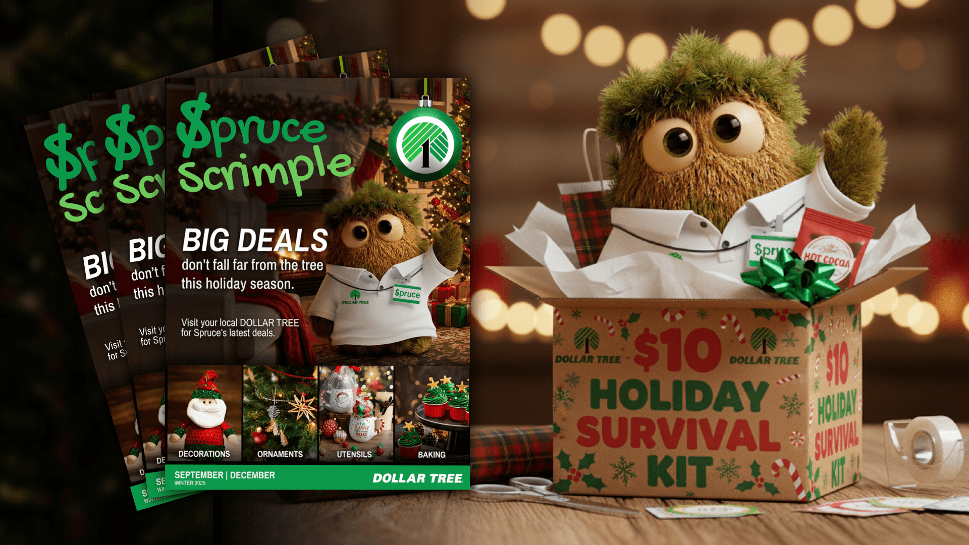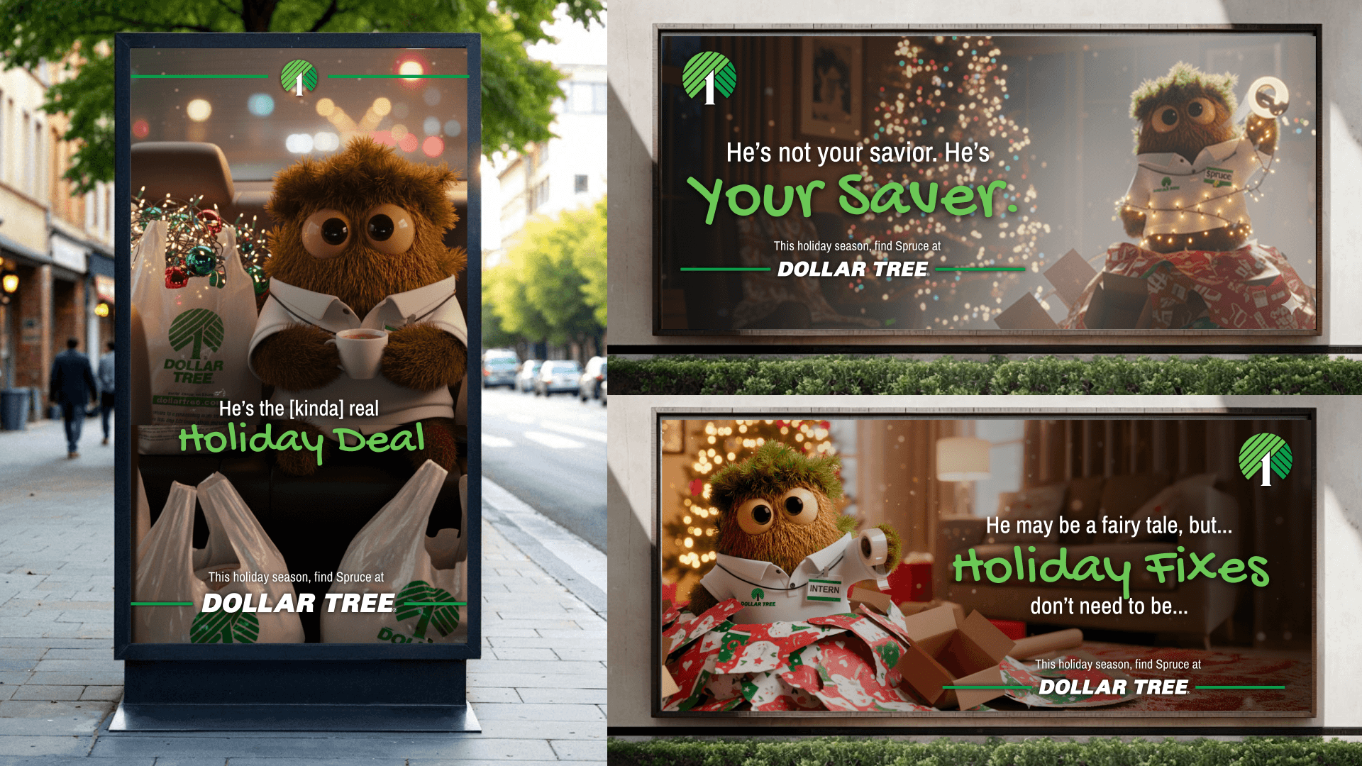 The holidays are supposed to be magical. For Gen Z they're mostly stressful, overpriced, and chaotic. 56% of young adults report a holiday meltdown every year — and the outdoor retail industry had spent decades pretending otherwise. Dollar Tree already had the solution. It just needed a face. Enter $pruce $crimple — an immortal, two-foot-tall tree fairy and Dollar Tree's newest seasonal hire. Scrappy, endearingly chaotic, and absolutely committed to getting Gen Z through December with their budget and sanity intact. Not a mascot. A movement.