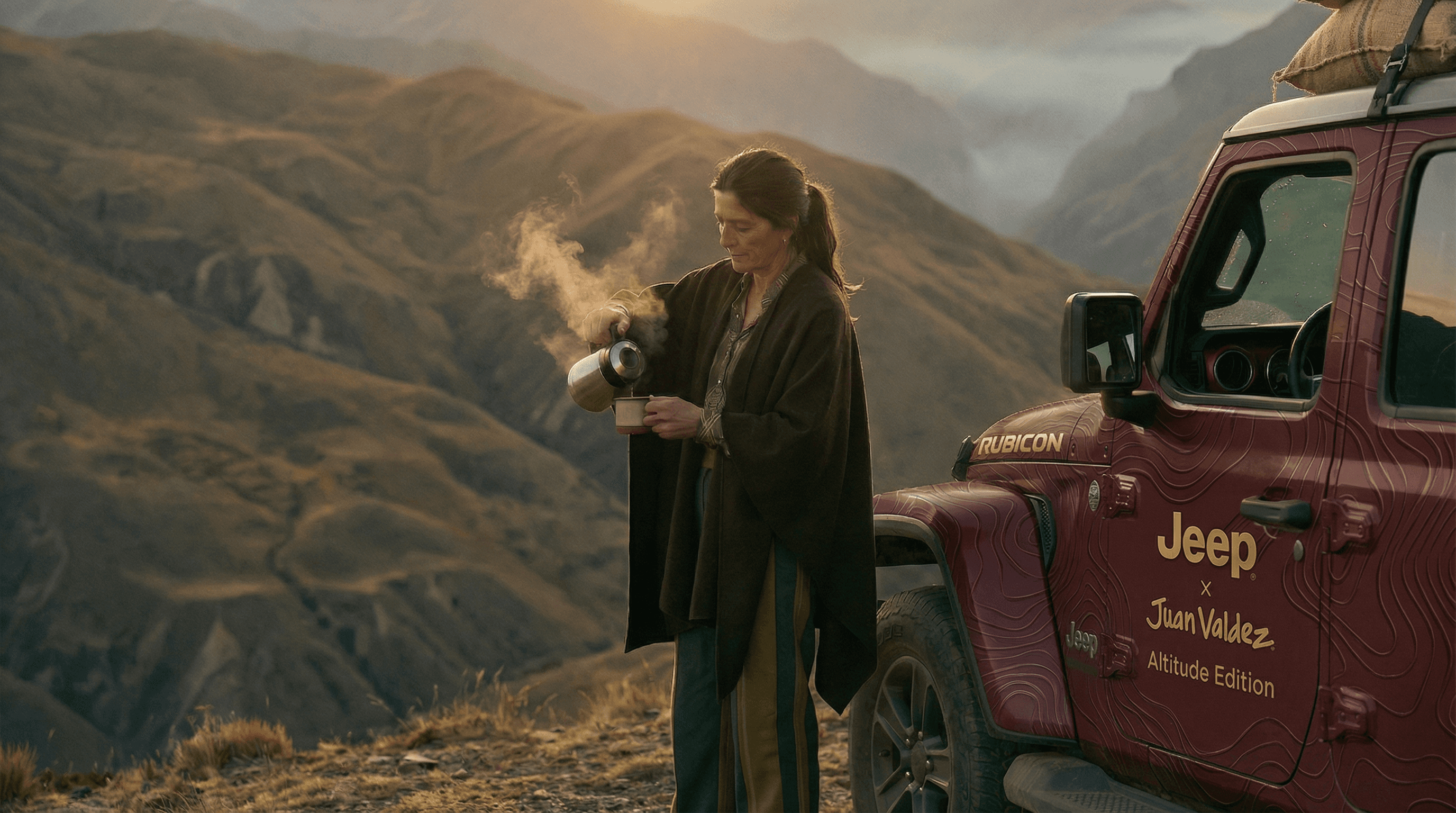 In Colombia's coffee region, Jeeps don't carry tourists. They carry harvests. For generations, they've been infrastructure — not icons of adventure, but tools of the climb. This spec campaign didn't invent a connection between Jeep and Juan Valdez. It revealed one that already existed. The creative challenge was doing it without romanticizing tradition or defaulting to the familiar farmer stereotype. Instead the campaign was approached through an editorial lens — centering a woman as the face of the ascent, elevating the terrain as the real protagonist, and reframing the Jeep as something Colombia already claimed long before the brand did.